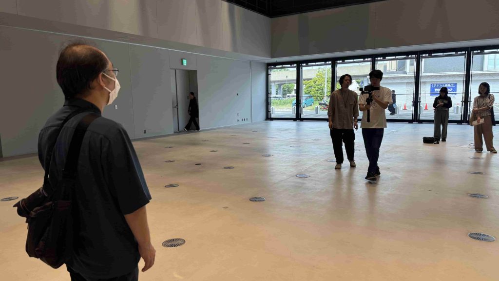その後、館内の多目的ギャラリーに移動してジンバルを使った撮影実習を実施!