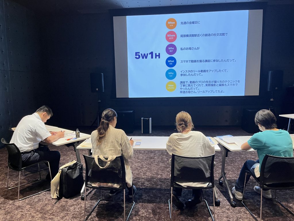 6月21日(土)、東海市創造の杜交流館 南館・映像ホール2にて、文章を短く伝えるポイントを学ぶ講座が開催されました。講師は、地元ケーブルテレビ局で地域ニュース番組の記者である細井映里さんに担当していただきました。