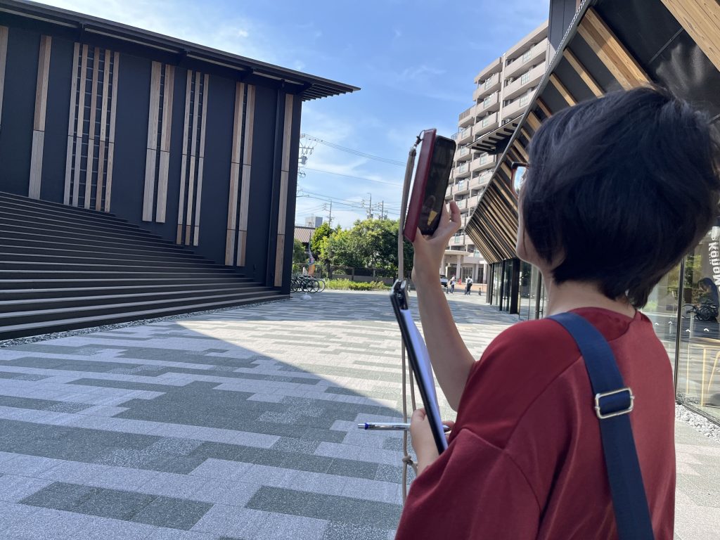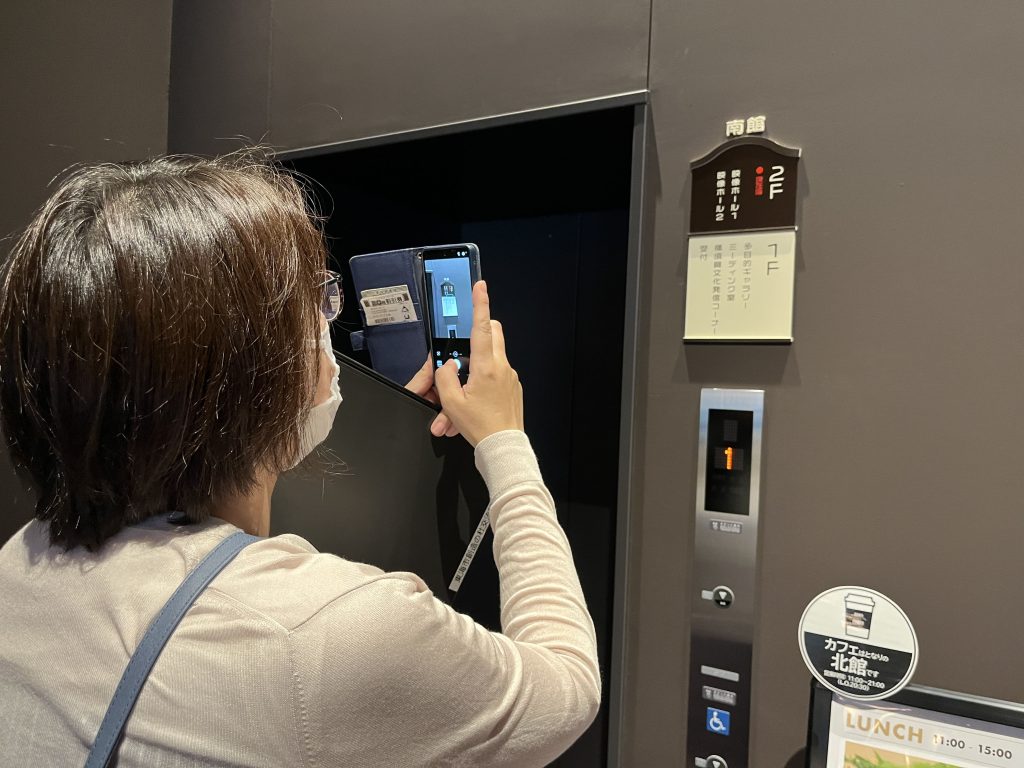 参加者はスマートフォンでの撮影テクニックを学んだ後、創造の杜交流館のニュース原稿を作成しました。自身が作成した記事に合うように、スマートフォンで館内を撮影しました。