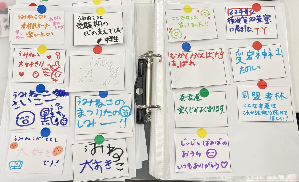5月のオープンの時には、まっさらだった地図ボードは、日に日にメッセージが増えていき、2か月で貼り切れないほどになりました。(写真)