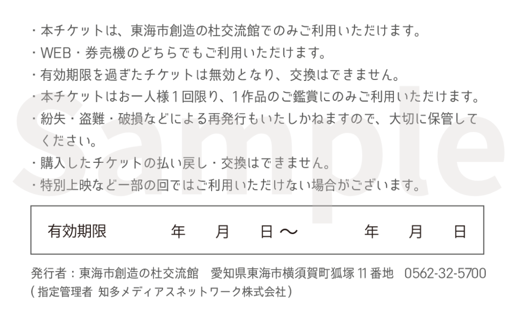 - 名称:東海市創造の杜交流館 CINEMA GIFT TICKET(映画鑑賞券)